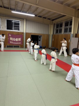 この日は、今年 昇段審査 に挑戦する二人が中心となって、準備体操から基本稽古までを仕切りました。