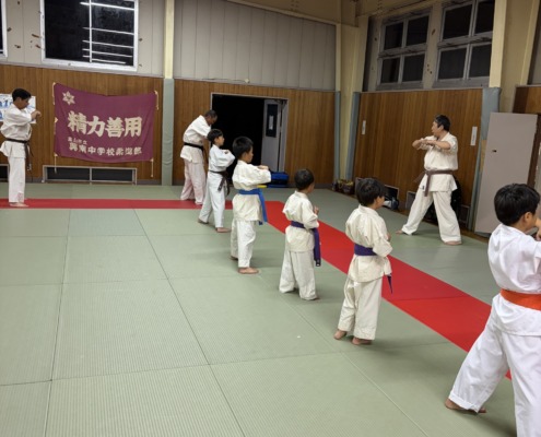 自分の番が近づくと背筋をピンと伸ばし、一生懸命に基本技や型の習得に取り組む姿に、こちらも胸が熱くなります。